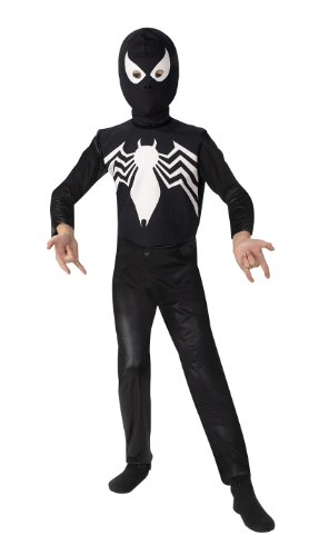 Child Black Spiderman Costume - This officially licensed Black Venom Spiderman Costume for children includes the black costume jumpsuit and fabric hood/mask. The Black Spiderman Costume is available in child sizes Small, Medium and Large.